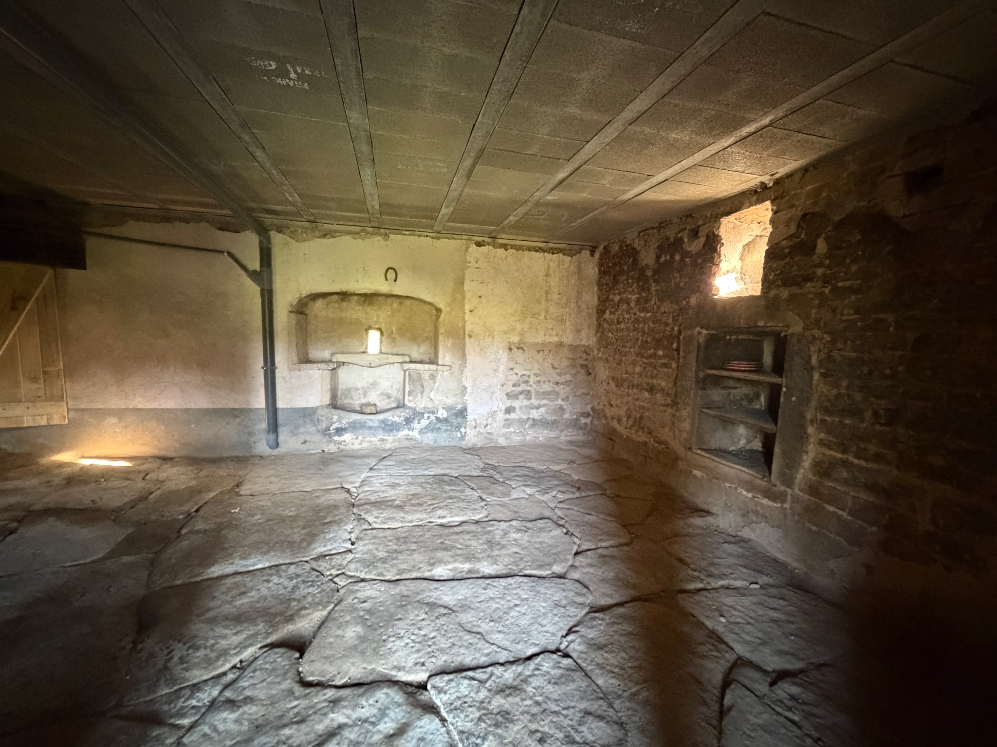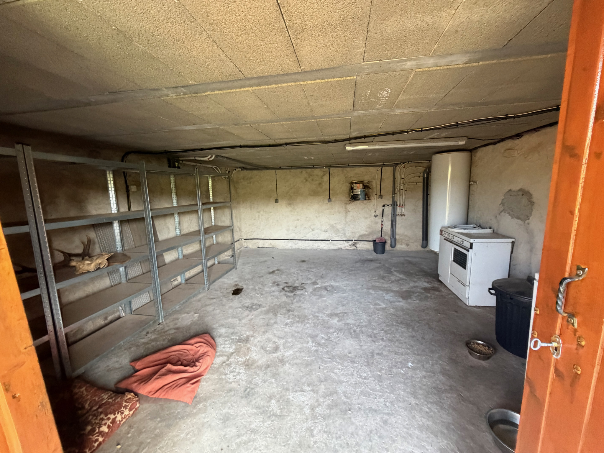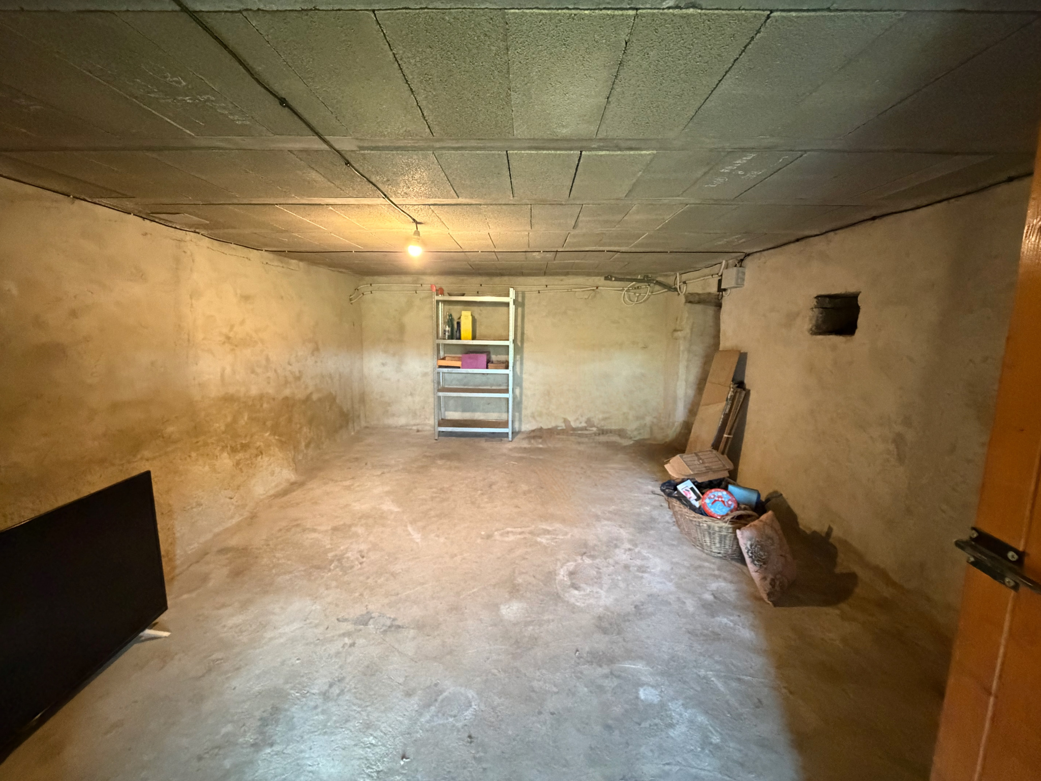 Le rez-de-chaussée offre 73 m² de caves réparties en trois pièces, pouvant servir de stockage ou d'atelier. Une ancienne étable de 21 m² permet aussi du stockage et s'ouvre sur le jardin d'environ 500 m².