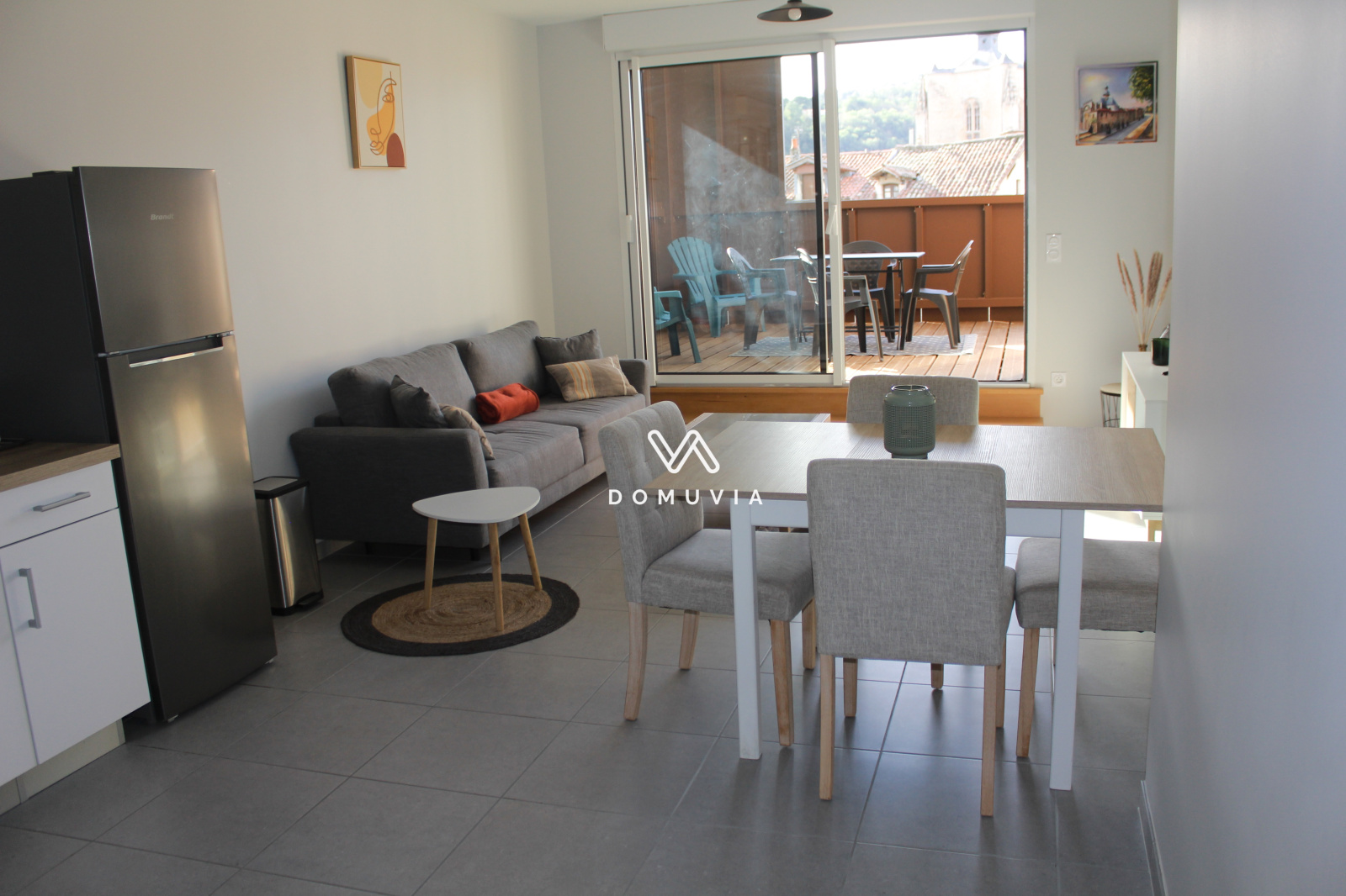 Très belle terrasse de 13 m² exposée au sud, de laquelle on peut observer au premier plan la chapelle des Pénitents Noirs, puis la Bastide et au delà les collines entourant Villefranche.