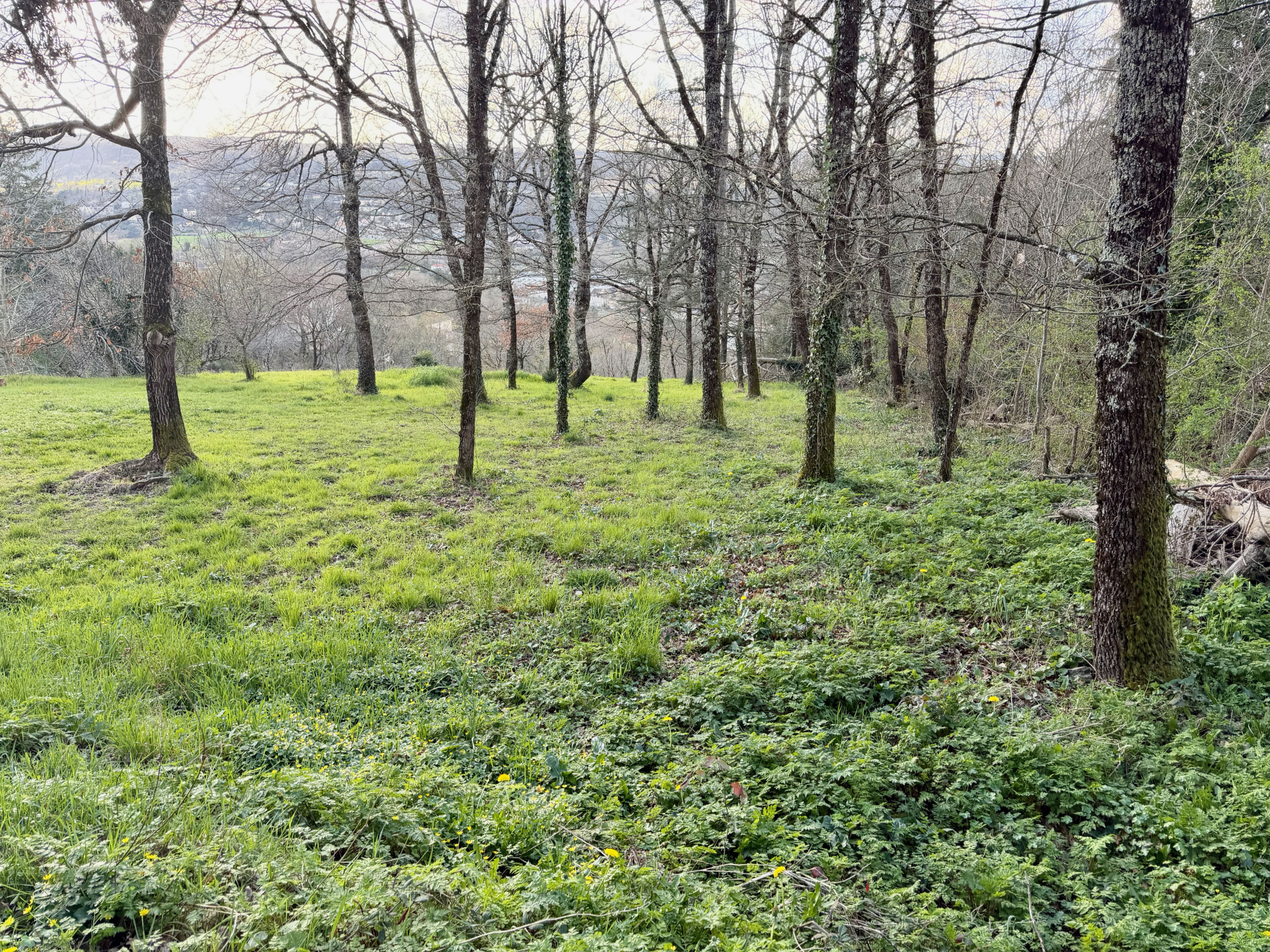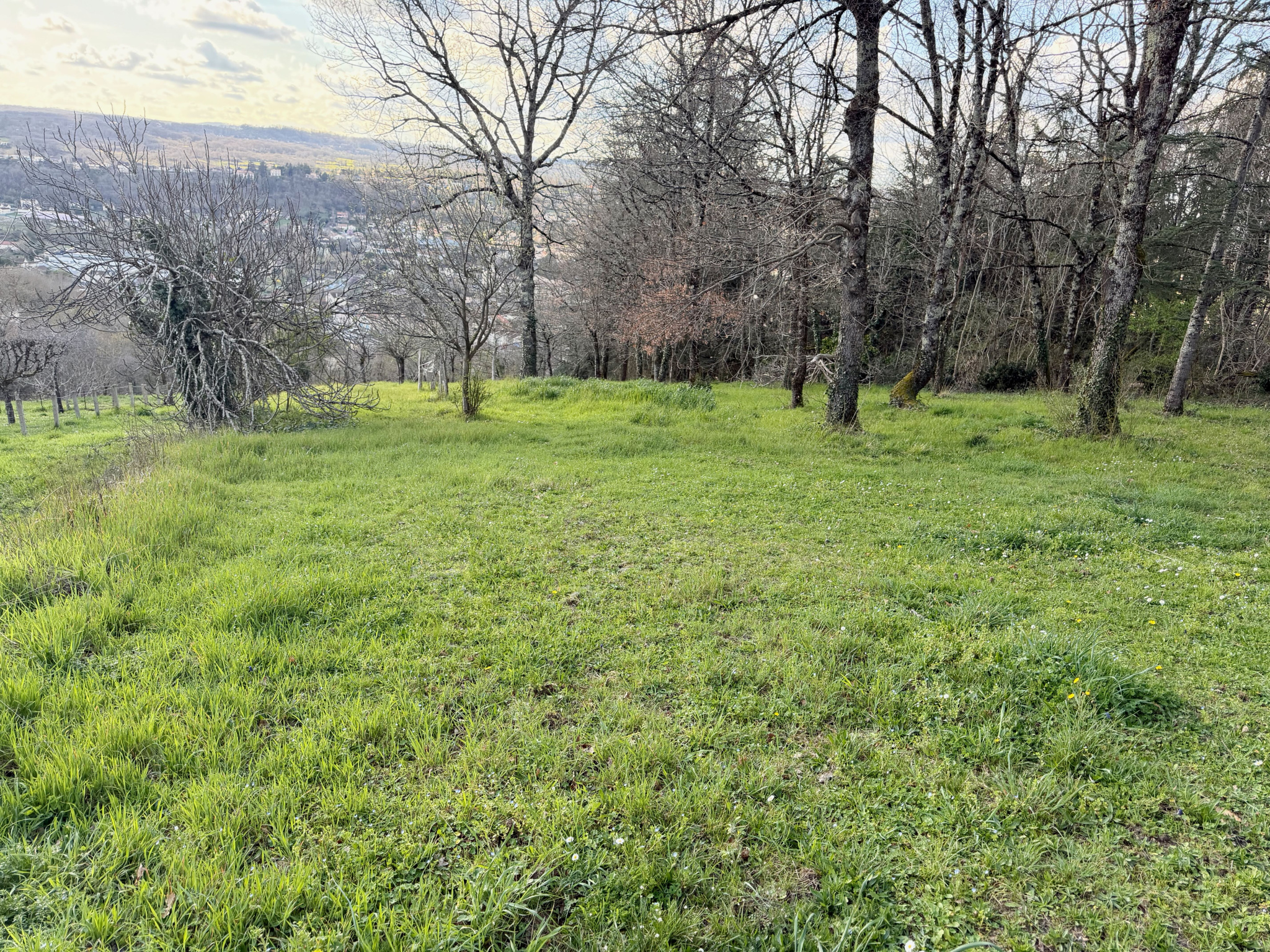 Terrain de loisirs de 1825 m² en pente exposé à l'ouest. Belle vue dominante.