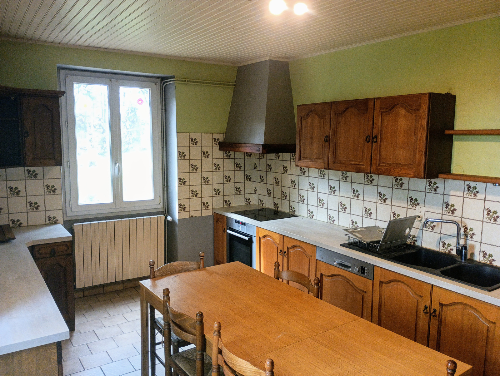 Une cuisine de 16 m² (une partie des meubles de cuisine sont récents et l'électroménager est en bon état).