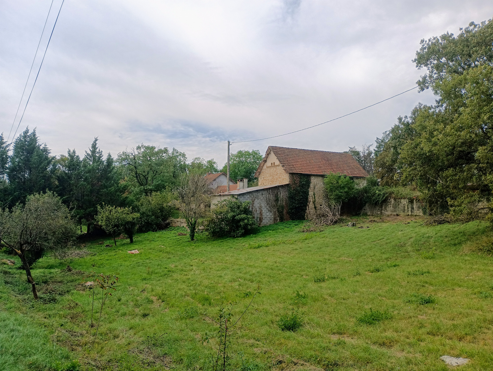 Le tout se répartit sur un terrain arboré avec plusieurs essences de résineux et d'arbres fruitiers d'une superficie de 6 929 m².